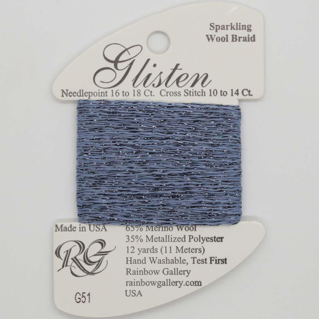 Glisten Sparkling Wool Braid 65% Merino Wool, 35% Metalized Polyester Tempest G51 - 12 Yards